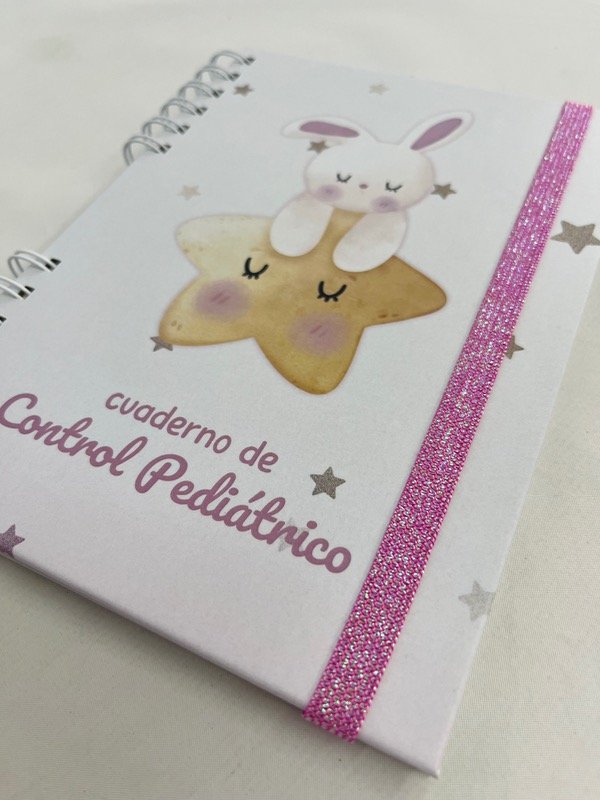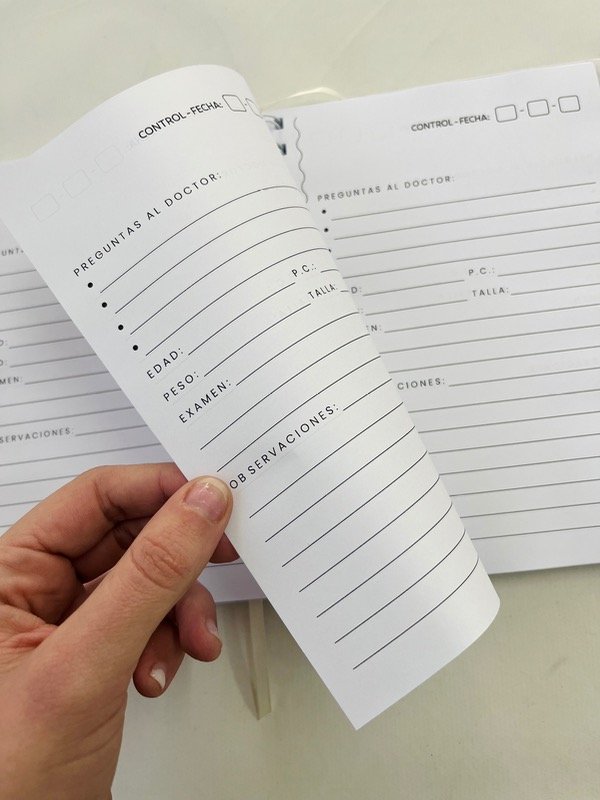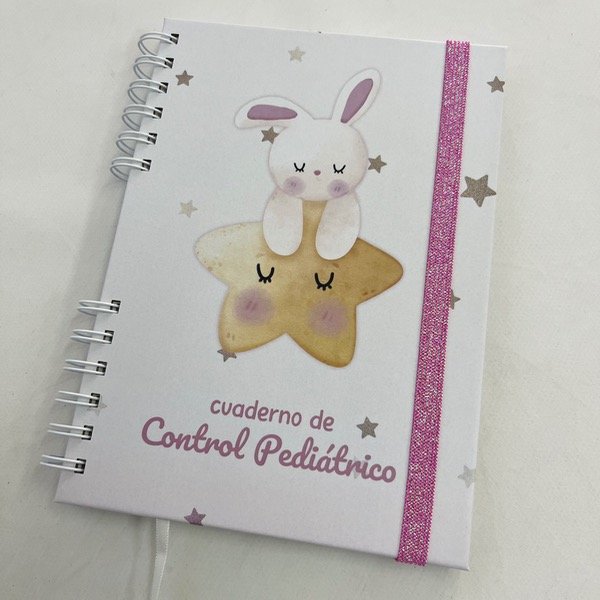 Cuaderno pediatrico de tapa dura impreso en blanco y negro.