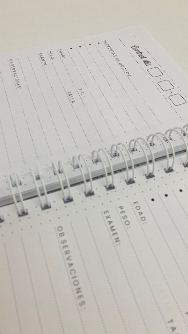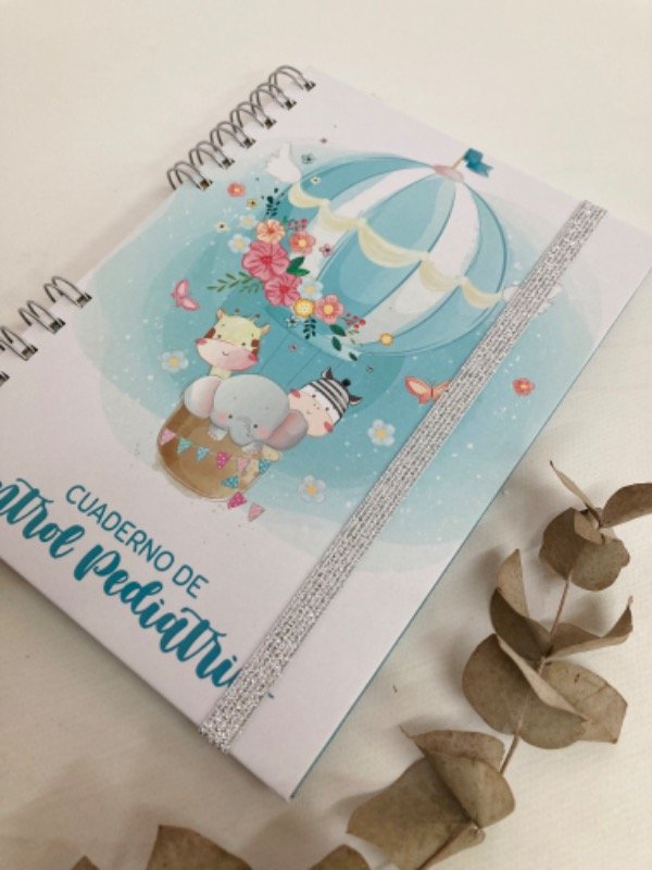 Cuaderno pediatrico de tapa dura impreso en blanco y negro.
