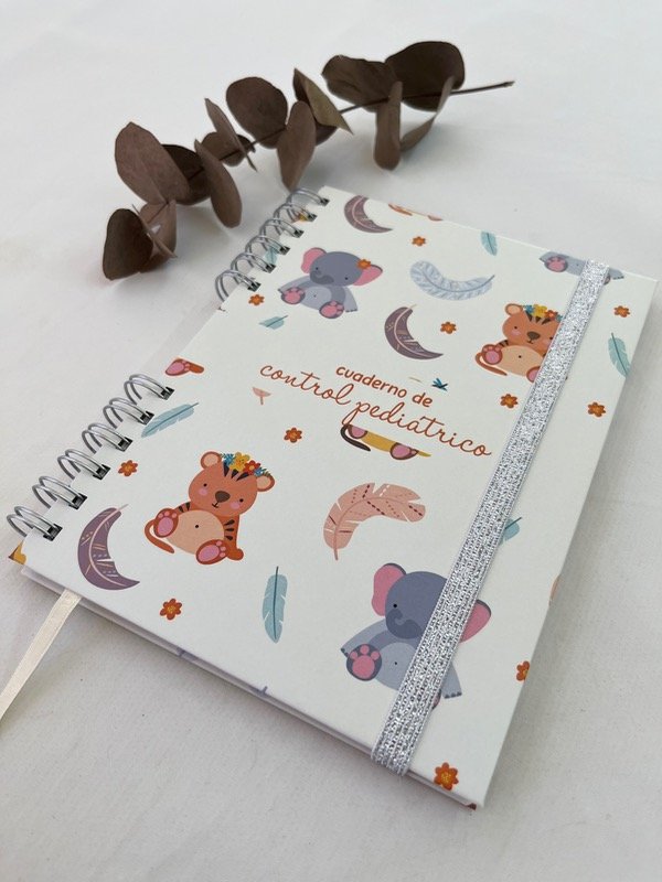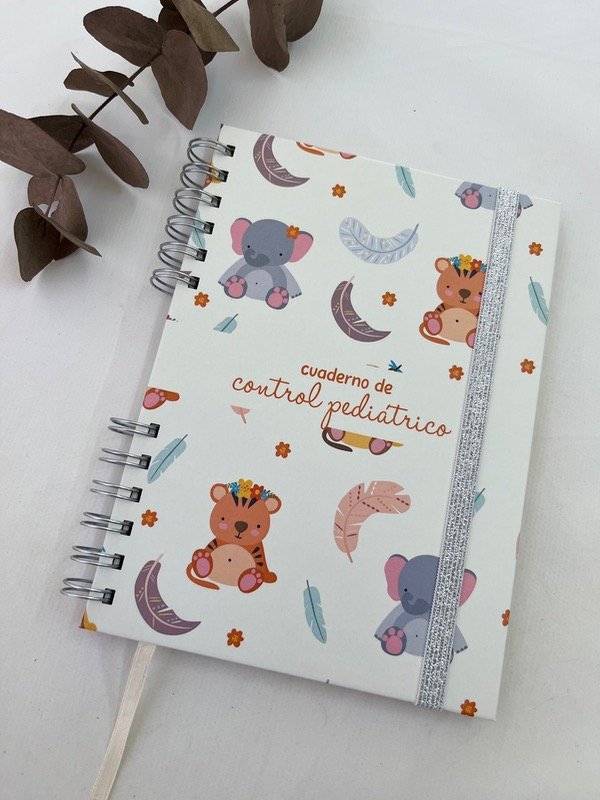 Cuaderno pediatrico de tapa dura impreso en blanco y negro.