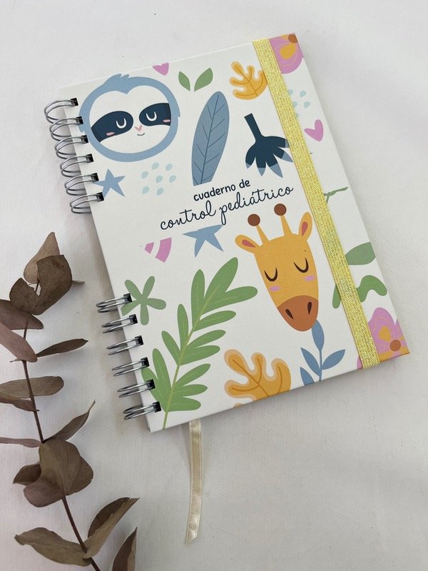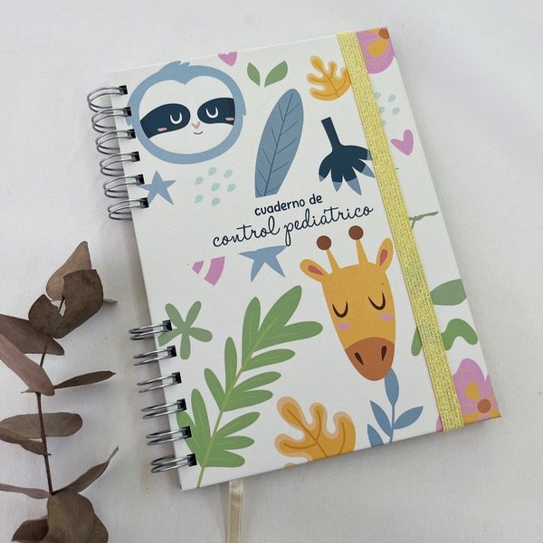 Cuaderno pediatrico de tapa dura impreso en blanco y negro.