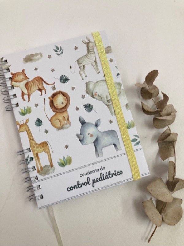 Cuaderno pediatrico de tapa dura impreso en blanco y negro.